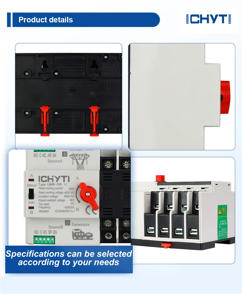 Если вам требуется высококачественный автоматический переключатель резерва на 100 А, отвечающий вашим конкретным потребностям, онлайн-служба China ICHYTI может вам быстро помочь. Наряду с перечисленными продуктами, ICHYTI также предлагает возможность настроить ваш уникальный автоматический переключатель на 100 А в соответствии с вашими конкретными требованиями. Пожалуйста, воспользуйтесь нашим онлайн-сервисом для своевременной помощи. Автоматический переключатель ICHYTI на 100 ампер экспортируется в Европу и США, на Восток, в другие страны и регионы.