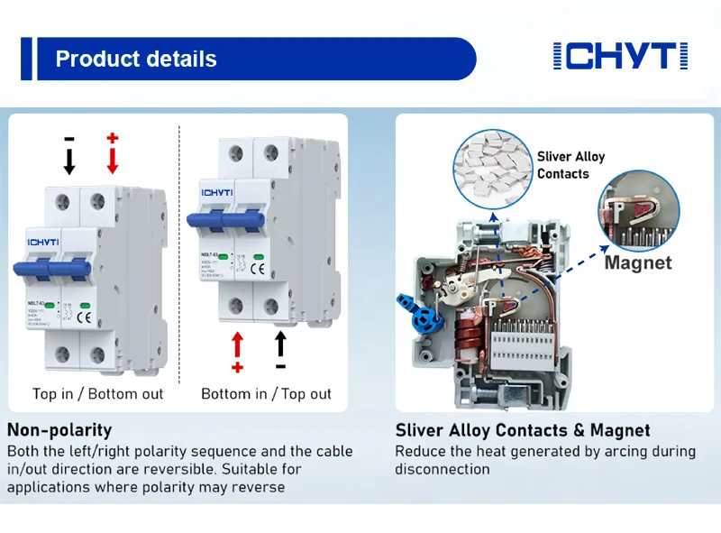 Наш высоковольтный автоматический выключатель постоянного тока обеспечивает надежную работу даже в самых тяжелых условиях. Его прочная конструкция и высококачественные материалы обеспечивают долгий срок службы и бесперебойную работу, обеспечивая вам спокойствие и уверенность в том, что ваша система защищена.