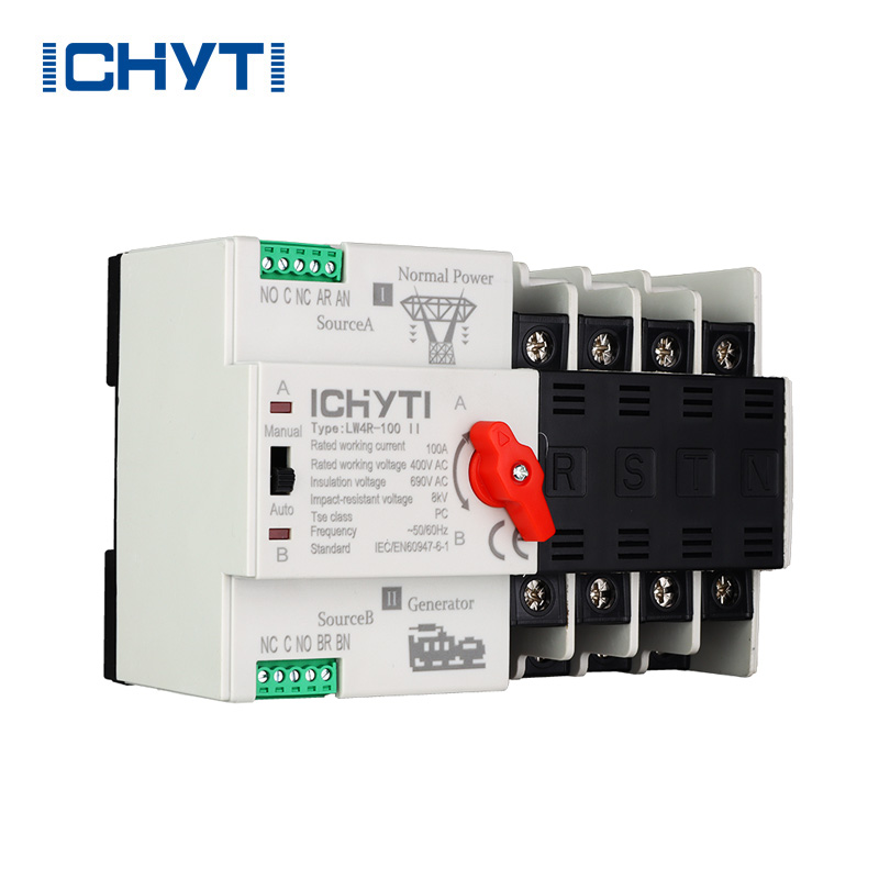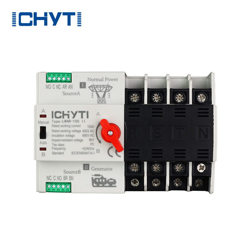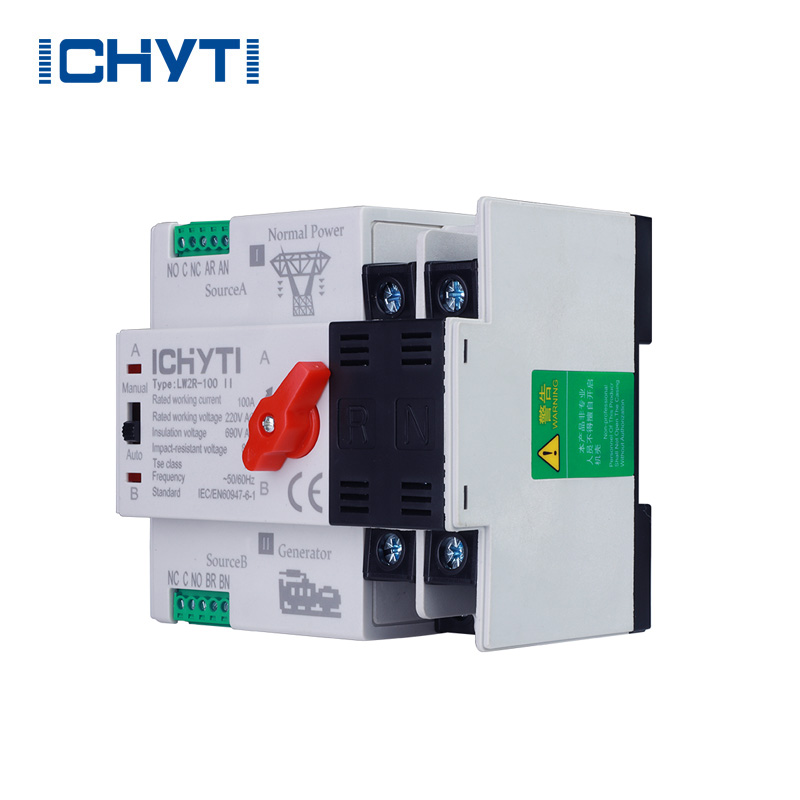 Китайская фабрика ICHYTI Оптовая покупка со скидкой Однофазный автоматический переключатель имеет три функции переключения в системе электропитания трехфазной четырехпроводной электросети, включая автоматическое переключение резервного источника питания, резервного источника питания, а также электросети и генератора. Он может определять эффективное значение трехфазного напряжения, эффективное значение фазного напряжения и фазу двух источников питания в режиме реального времени и автоматически переключаться с аномальных источников питания на нормальные источники питания в случае перенапряжения, понижения напряжения или потери фазы на любой фазе.